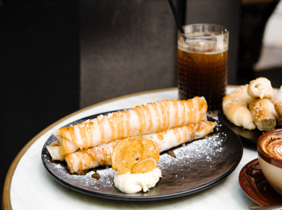 Љубителите на слатко, тешко е да одолеат на палачинките – тенки, путерести, препознатливи во Источна и Централна Европа. Верзијата на Butler е дополнета со сезонска комбинација од кандирани портокали, маскарпоне со портокал и прелив пд слива. Ако брзате, како што најчесто се случува со клиентите, еден ѓеврек со сирење, мафин и кафе ќе ви го разубават патот низ денот.