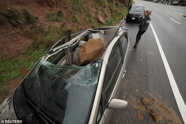 Масивни камења паѓаат на патот, двајца загинаа откако дрво падна врз автомобил, а мајка и ќерка за малку ќе беа „голтнати“ од огромна дупка додека моќните бури пустошат низ Калифорнија