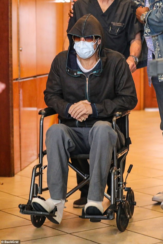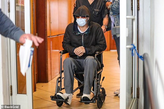 Актерот беше забележан како седи во инвалитска количка и ја напушта болницата.