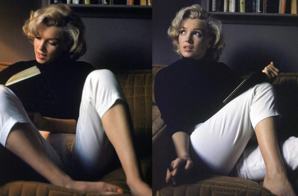 Во реалниот живот, Мерилин внимателно ја негувала својата силуета преку изборот на облека: тесни фустани, капри-панталони, лежерни џемпери. Сликите од нејзиното секојдневие само делумно ја откриваат вистинската Монро, оставајќи доволно простор за мистерија и интерпретација.