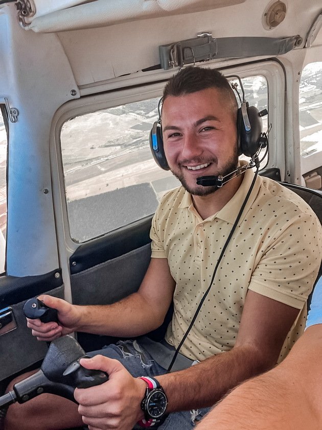Парот трабало да седи заедно на задното седиште, но откако Дарко го известил пилотот дека негова животна желба е да биде пилот, тој го седнал на предното седиште за да управува со авионот.