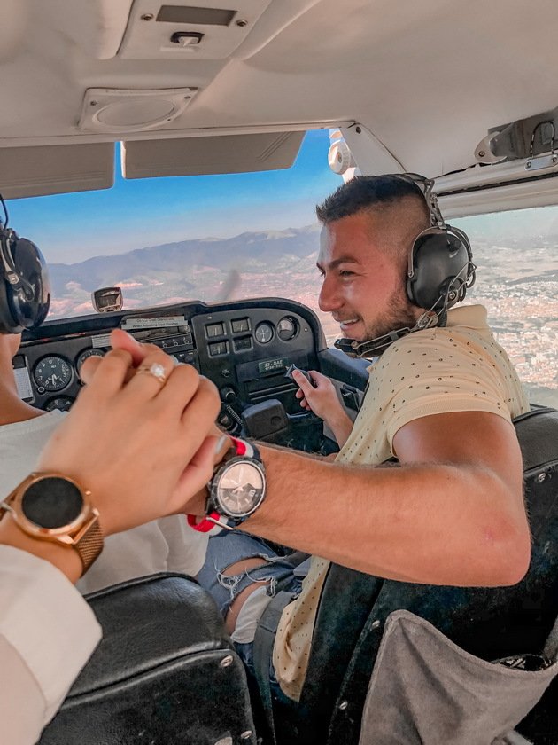 Млад новинар ја запроси својата девојка во облаците над Скопје