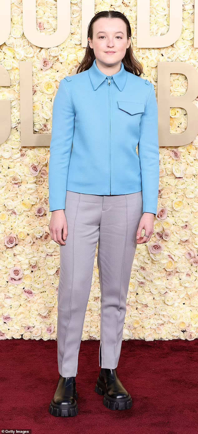 Ѕвездата на „Последниот од нас“, Бела Ремзи, беше забележана во јакна со сина јака со патент и сиви панталони.