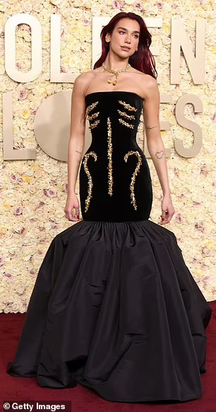 Музичката сензација Дуа Липа дојде облечена во црн фустан до подот кој наликуваше на виолина.