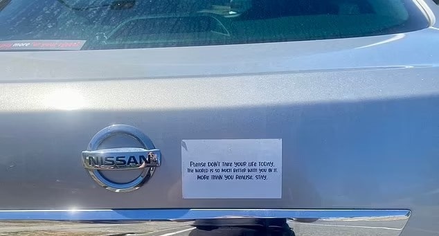 „Ми го спасивте животот. Го напуштив домот со план и барав некаков знак. Било каков знак дека ја правам правилната работа. Тогаш го здогледав вашиот автомобил на паркингот. Ви благодарам“ се вели во белешката.