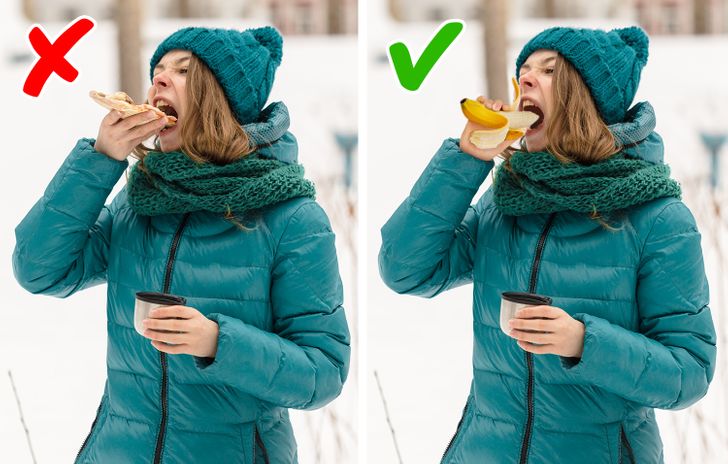 Решение: Јадете храна што се вари подолго – како работи богати со здрави масти, протеини и јаглехидрати – бидејќи тие подолго време ќе ве одржат топли. Посебно се споменува бананата, која е богата со витамин Б и магнезиум, помагајќи им на тироидната жлезда и надбубрежните жлезди да ја регулираат температурата на вашето тело.