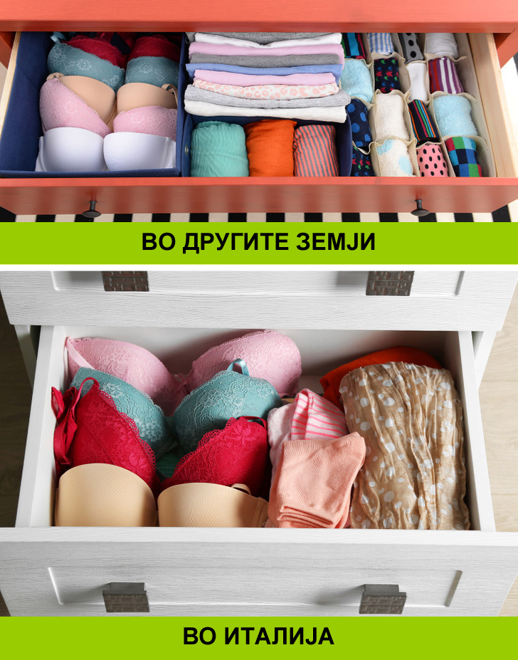 Во Италија луѓето немаат тенденција да купуваат големи автомобили и да ставаат големи гардероби во своите соби. Италијанките избираат минимализам и ги забележуваат неговите позитивни аспекти. Планини од облека нема да се вклопат во мал плакар, па нема смисла да се купуваат работи на распродажба кои со години ќе собираат прашина во исчекување на нивното време. Ограничениот простор ги учи Италијанките да се задоволат со малку и да купуваат само она што навистина им е потребно.