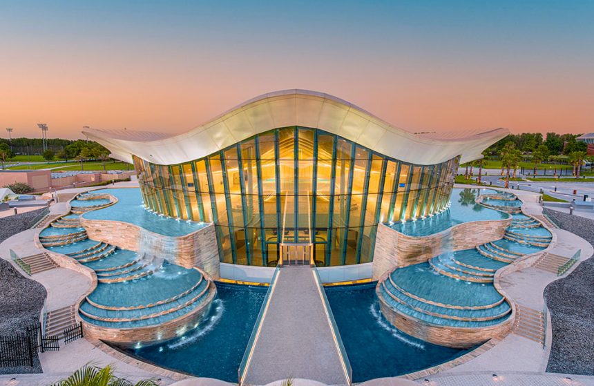 Базенот е исполнет со 14 милиони литри вода – пандан на волуменот на шест олимписки базени – што се одржува на топли 30 Целзиусови степени постојано. Сместен е во зграда во форма на острига од 1.500 квадратни метри.