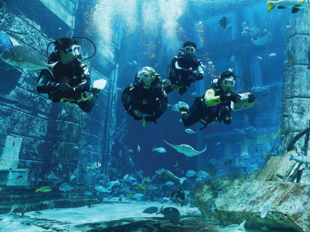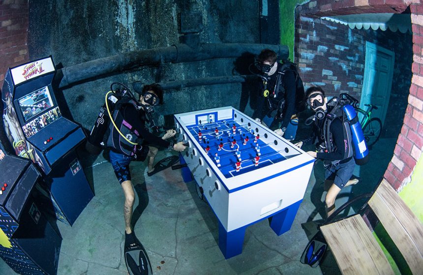 Затоа Deep Dive Dubai крие потопен град и простор за забава каде што можете да играте подводен столен фудбал и да возите велосипед. Различни забавни објекти ве очекуваат на различни длабочини, а сопствениците тврдат дека мора да нуркате неколку пати за да ги видите сите негови привлечности.