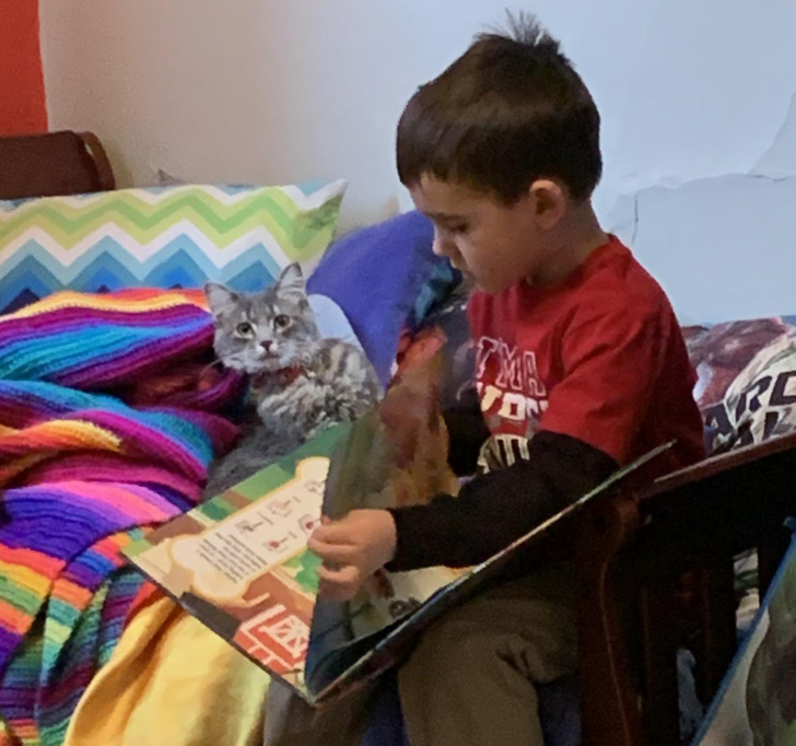 12. „Моето 4 годишно дете и чита приказна на нашата мачка“