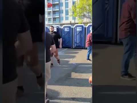 Девојката толку добро се средила, што мора да измислува нови техники за држење рамнотежа ако сака да влезе во тоалетот.