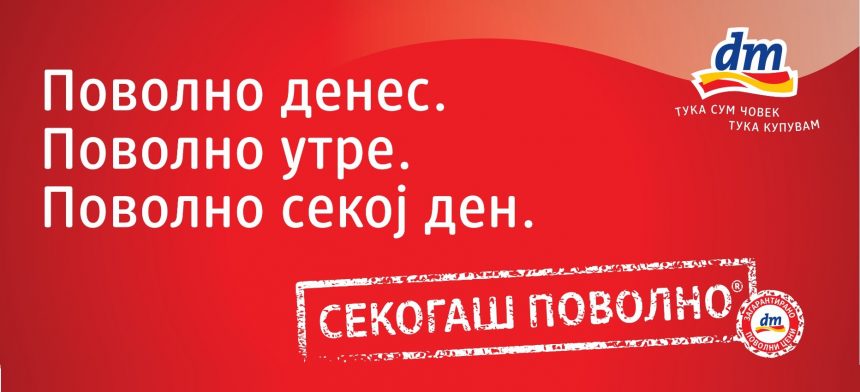 Новиот концепт СЕКОГАШ ПОВОЛНО има за цел на купувачите да им донесе корист во вид на заштеда на пари и време на долгорочен план. Со воведување на ваков концепт за купување, дрогерискиот ланец настојува на домашниот пазар да ги пренесе одржливите трендови и квалитетната пракса од останатите европски земји од dm концернот.