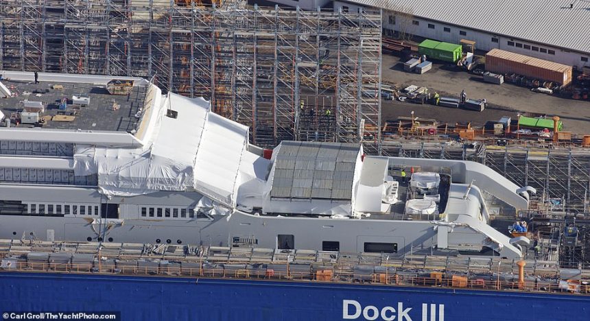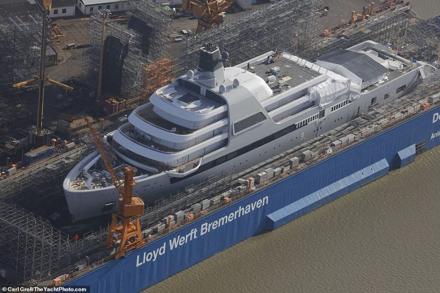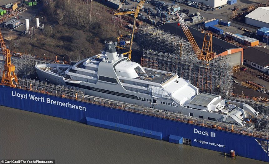 Новата суперјахта на Роман Абрамович во вредност од половина милијарди евра е забележана за прв пат во германско бродоградилиште и е при крај со изградбата.