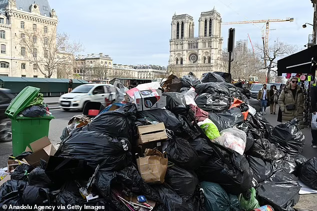 Купишта ѓубре оставени од луѓе кои штрајкуваат контејнери продолжија да се трупаат во Париз, делумно служејќи како импровизирани барикади за демонстрантите.