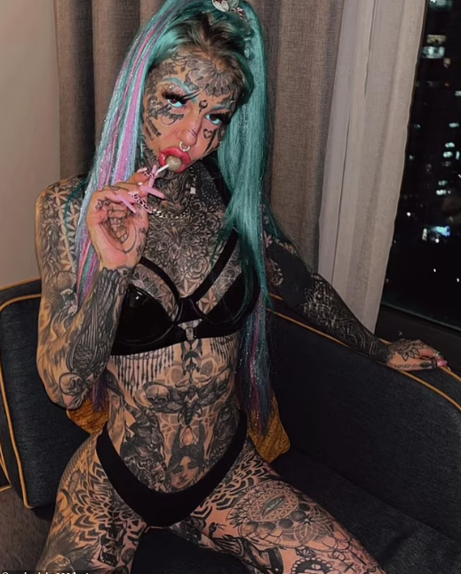 Манекенката од Бризбејн се пофали со сатанистички симболи, расцепен јазик и тетовирани светло сини очни јаболка, поради кои таа рече дека била слепа три недели.
