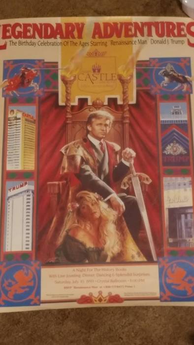 Пред неколку години, поканата од 47-тата роденденска забава на Трамп се најде на „Редит“. Поканата, која ветува „роденденска прослава на векот“ го покажува „ренесансниот човек “Доналд Tрамп. Трамп седи на престол со меч и крзнени наметки, а сопругата Марла клечи покрај него.