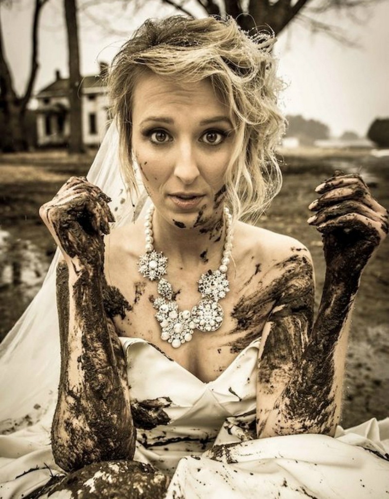 Жителите на Шкотска, како што велат, одат од спротивното – очигледно вака се појавила една ваква чудна свадбена традиција. Навистина, во повеќето други земји, ако невестата во нејзиниот шик фустан се испостави дека е покриена со кал буквално од глава до пети, тогаш таа ќе биде вознемирена, благо кажано. Но, шкотските девојки само ќе се радуваат: излегува дека мештаните веруваат дека ако невестата се извалка колку што е можно во кал на свадбата, тогаш што е можно помалку од оваа непријатна супстанца ќе има во врската на младенците. Патем, овој ритуал со текот на времето доби смешна модернизација: девојката не само што е валкана со разни сосови, туку мора и да оди по улиците без да се измие или пресоблече, посетувајќи го секој паб на патот.