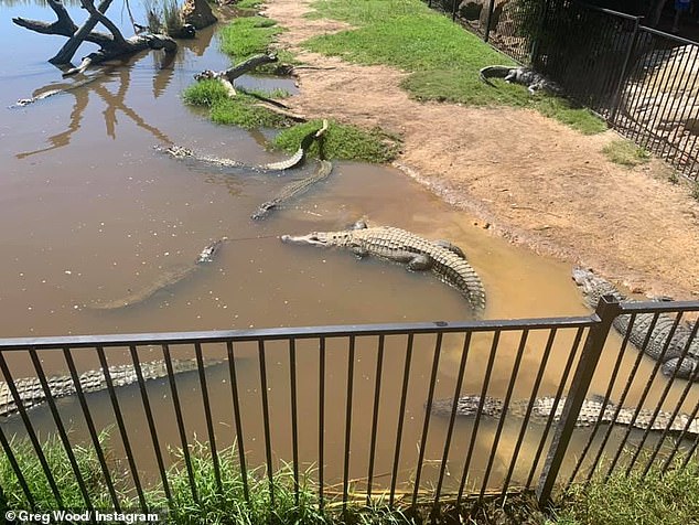 Застрашувачка слика покажува алигатори во зоолошката градина во Нов Јужен Велс, Австралија опасно близу да испливаат надвор од своите живеалишта поради надојдените води.