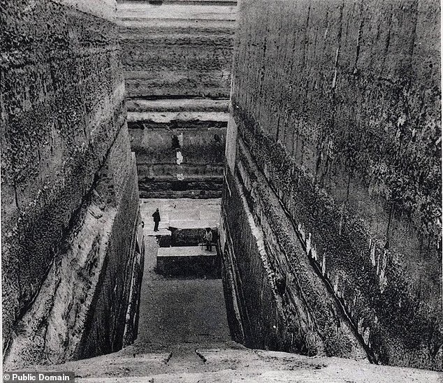 Археологот Алесандро Барсанти открива огромна јама во Т-форма издлабена во карпа, длабока 30 метри и обложена со гранитни блокови тешки по 8 тони