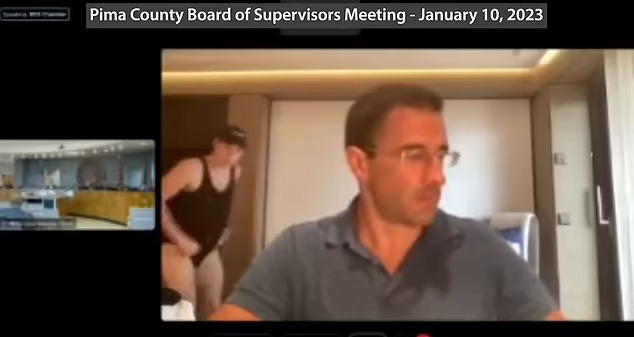 Полугол маж неочекувано се појави во позадината на повикот на пратеник од Аризона на Зум за време на состанокот на Одборот на надзорници на округот Пима.