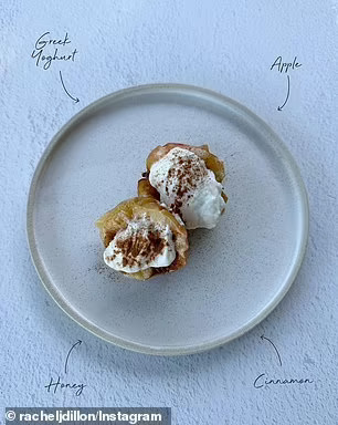 Кога Рејчел сака нешто слатко, таа се одлучува за јаболка со грчки јогурт, мед и цимет за избалансиран, но вкусен десерт.
