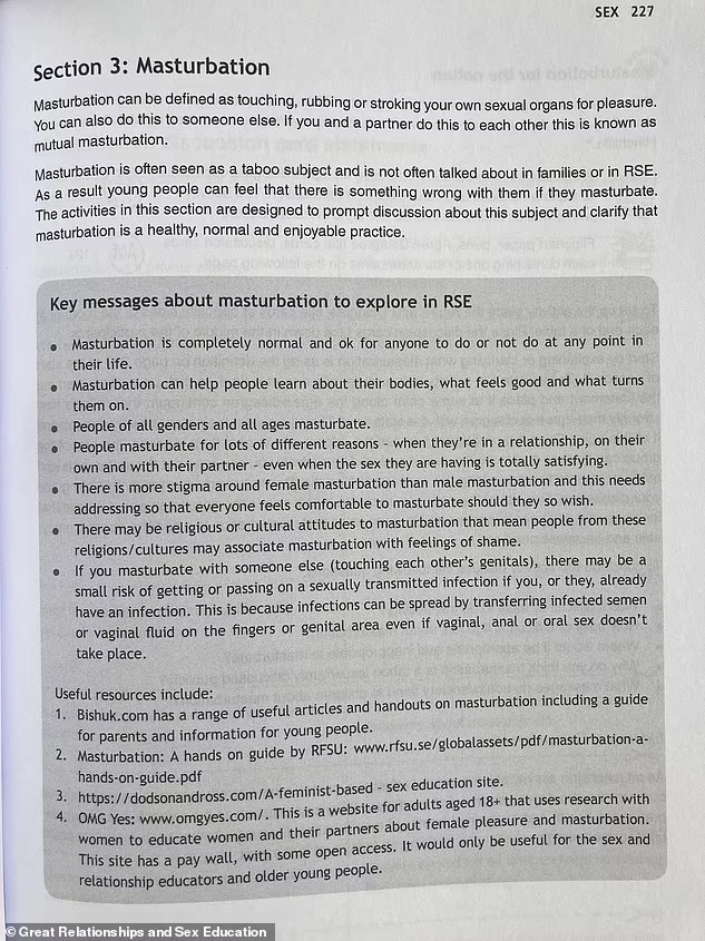 Пронајден е графички наставен материјал – вклучително и прирачник за секс за пред тинејџери – што им се предава на децата на часовите низ Обединетото Кралство.