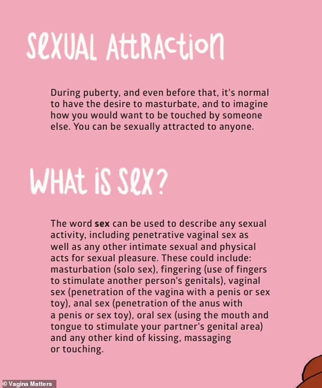 Водичот, наменет за девојчиња на возраст од 12 до 14 години, вели: „Можете да бидете сексуално привлечени кон секого“. Исто така, се наведени начини за наоѓање „сексуално задоволство“ што вклучува „анален секс“ и „орален секс“.