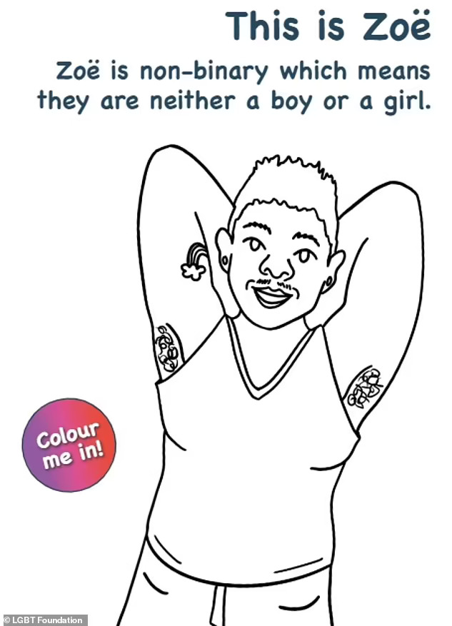 Децата исто така беа поканети да обојат во Zoë, „небинарна“ личност, што според книгата значи „тие не се ниту момче ниту девојче“.