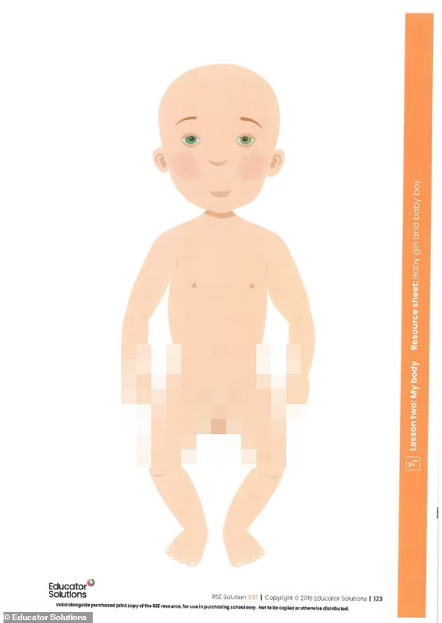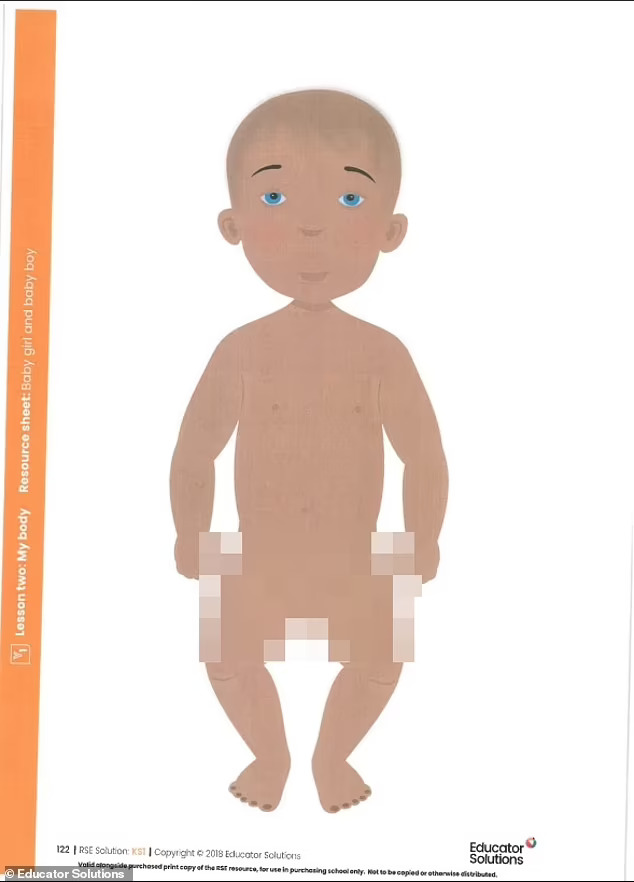 Наставниот материјал направен од Educator Solutions на Советот на округот Норфолк и споделен од основното училиште Мулбартон, кое се наоѓа во близина на Норвич, вклучува цртани филмови на голи мали деца кои треба да им се прикажат на пет и шестгодишни деца.