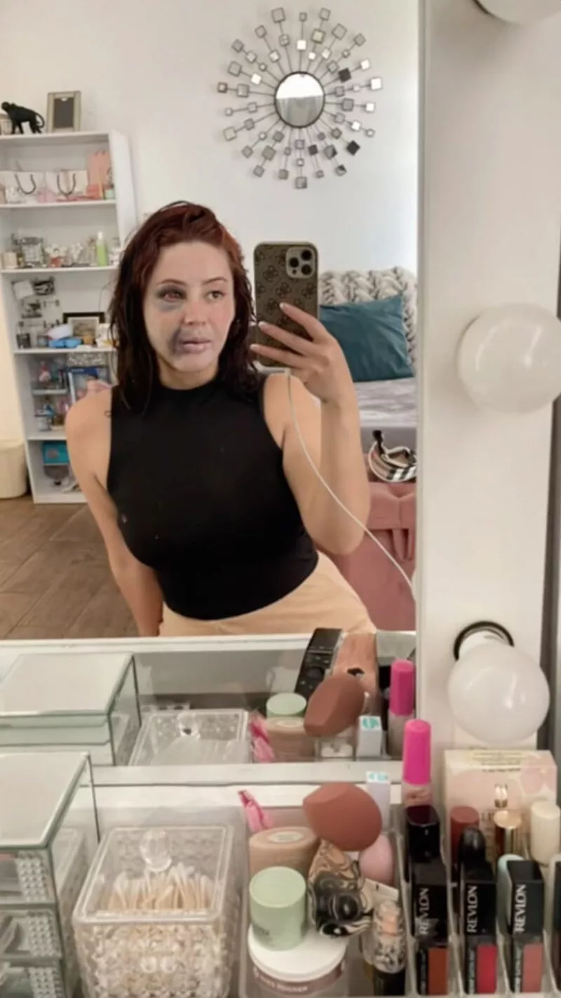 Набргу по третманот, таа се пожалила на голема болка, а лицето и било покриено со модринки поради кои изгледа како да излегла директно од некој хорор филм. 😱