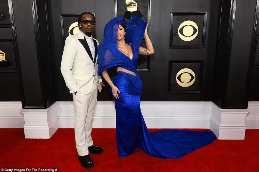 Карди Б избра кобалтно сина тоалета која имаше исечен детал долж средината со длабоко деколте. Таа го носеше индискиот дизајнер Гаурав Гупта.