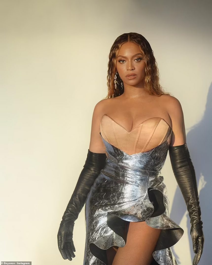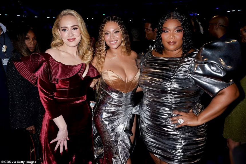 Бијонсе ги истакна своите облини во блескава сребрена и кремава тоалета без прерамки на Гучи со ракавици. Ја покажа својата прекрасна фигура во фустан без прерамки. Фустанот на 41-годишната легенда имаше многу висок шлиц до бутовите што ги покажа нејзините долги нозе, изгледот го комплетираше со ракавици и штикли со пуштена коса. додека Адел се одлучи за бордо кадифена варијатна од Луј Витон.