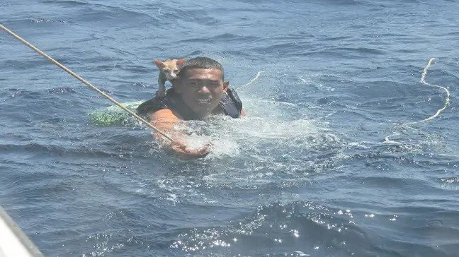 Овој морнар-херој спаси четири мачки од брод што тоне
