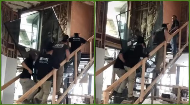 „Тешката работа“… Четворица мажи носат стакло, ама не додржаа баш
