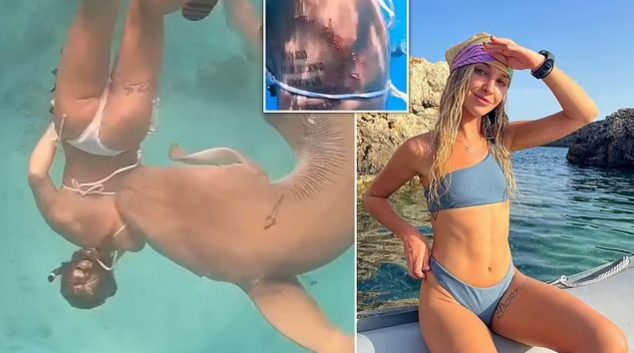 Кармен Кановас Сервело (30) нуркала во Атолот Вааву со пријател, кога ајкулата долга осум метри се нафрлила на неа и ја гризнала. Драматичната снимка покажува како суштеството кружи околу туристката облечена во бикини пред таа ненадејно да се заврти и да ја нападне. Сервело и пријателот Ибрахим Шафиг (37), подводен фотограф кој ја снимил …