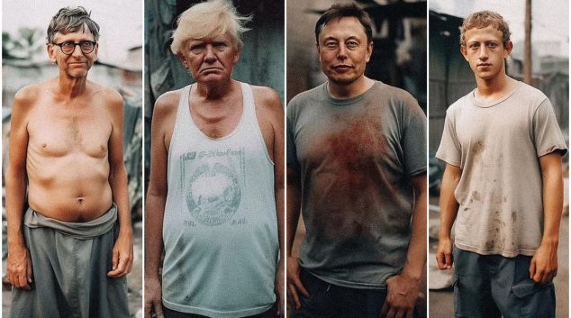 Уметникот користел вештачка интелигенција за да создаде слики на некои од најбогатите луѓе во светот – облечени во партали и прикажани во сиромашни квартови – повторно замислувајќи како би изгледале кога би биле сиромашни. Создадени од индискиот уметник Гокул Пилаи, впечатливите слики ги прикажуваат Доналд Трамп, Илон Маск, Маскеш Амбани, Марк Цукерберг, Ворен Бафет, Бил …