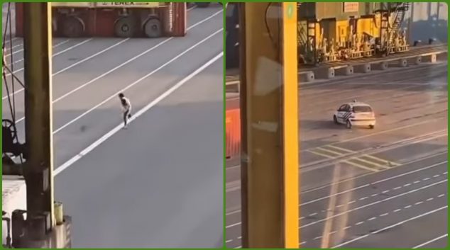 Управувачот на кран имаше интересен ден, тукушто беше сведок на несекојдневна полициска акција
