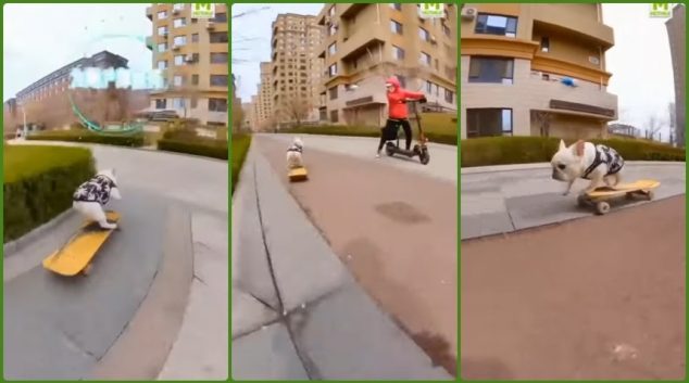 Мотивација на денот: Кучето го откри скејтот и ви покажа како се вози на четири нозе