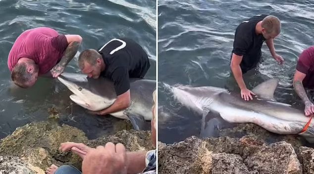 Ова е неверојатен момент кога група рибари извадиле шест рибарски конци од устата на ајкулата, на плажа во западна Австралија. Тројца мажи ја фатиле кит-ајкулата во Мандура, јужно од Перт, при што еден ја држи во водата додека друг ги вади јадиците од устата, покажува неверојатната снимка. Не покажувајќи никаков страв, еден од рибарите …