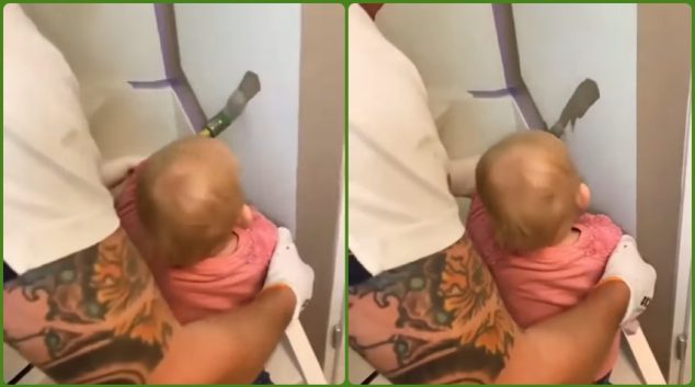 Малиот си најде одлично место, 2 во 1. Ем ќе мочка, ем си седи