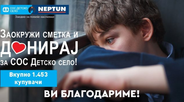 Хуманоста секогаш успева: НЕПТУН се заблагодарува на сите 1.453 потрошувачи кои придонесоа да се соберат финасиски средства за децата без родители