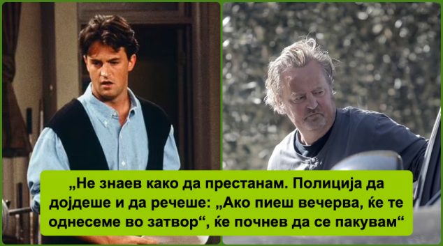 53-годишниот актер Метју Пери пред некое време ја заврши својата турнеја за неговата нова книга, мемоар „Пријатели, љубовници и големата страшна работа“ Во овој мемоар, ѕвездата на „Пријатели“ ја откри висtината на својата страшна битка за зависност од дрога и алкохол, која за малку ќе го чинела живот. Му биле дадени само два отсто шанси …