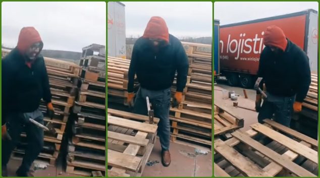 Мајсторот има навистина добар и брз алат, а пријателот што го снима некако почна да бега наназад