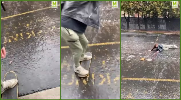 На овој талент ќе му дадеме медал за најлошата идеја на светот: скејтборд на мраз…