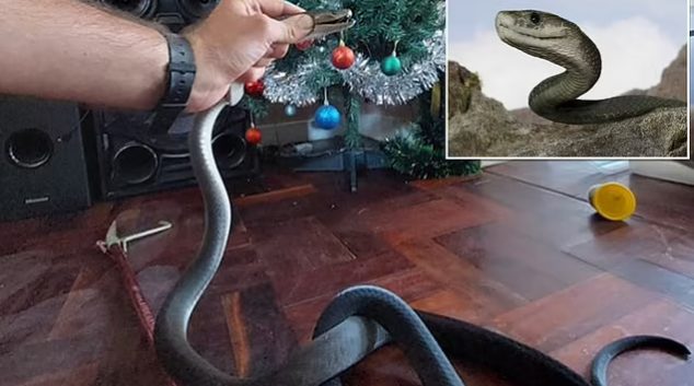 Смртоносна црна мамба се пикнала во дом на семејство во Квинсбург, Јужна Африка. Се чини дека долгата змија го истражувала празничниот аранжман пред да се свитка и да се скрие зад основата на дрвото. „Дедо Мраз ми остави божиќен подарок“, напиша ловецот на змии Ник Еванс во објава на „Фејсбук“ за инцидентот. Ова …
