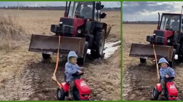 Малиот тракторист го вади тато од калта (позитив на денот)