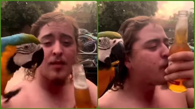 Викенд е време за пиво! И папагалот го знае тоа, плус не ви треба отварач