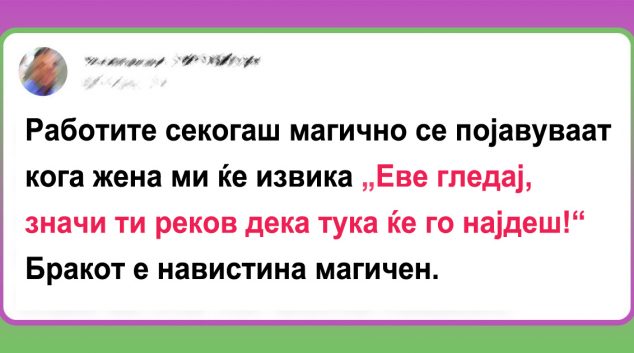Животот во брак не е секогаш како бајка. Но, ако има поддршка и меѓусебно разбирање, работите стануваат дефинитивно полесни. Исто толку „кул“ е кога сопругот се обидува да го исполни сонот на својата жена за голема куќа за кукли. Или кога жената го поддржува хобито на нејзиниот сопруг и му дава подарок за добредојде. Во …