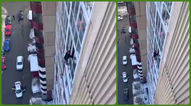 Пијаниот руски Ромео излегол преку прозорецот и бара помош, но проблемот е што живее на 12-ти спрат