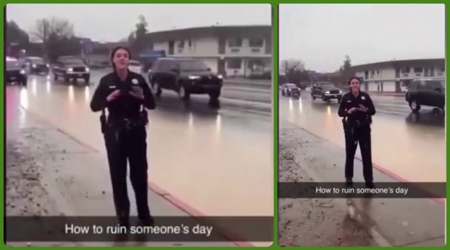 Колегата полицаец ја зафркава колешката, која известува за ситуацијата од терен